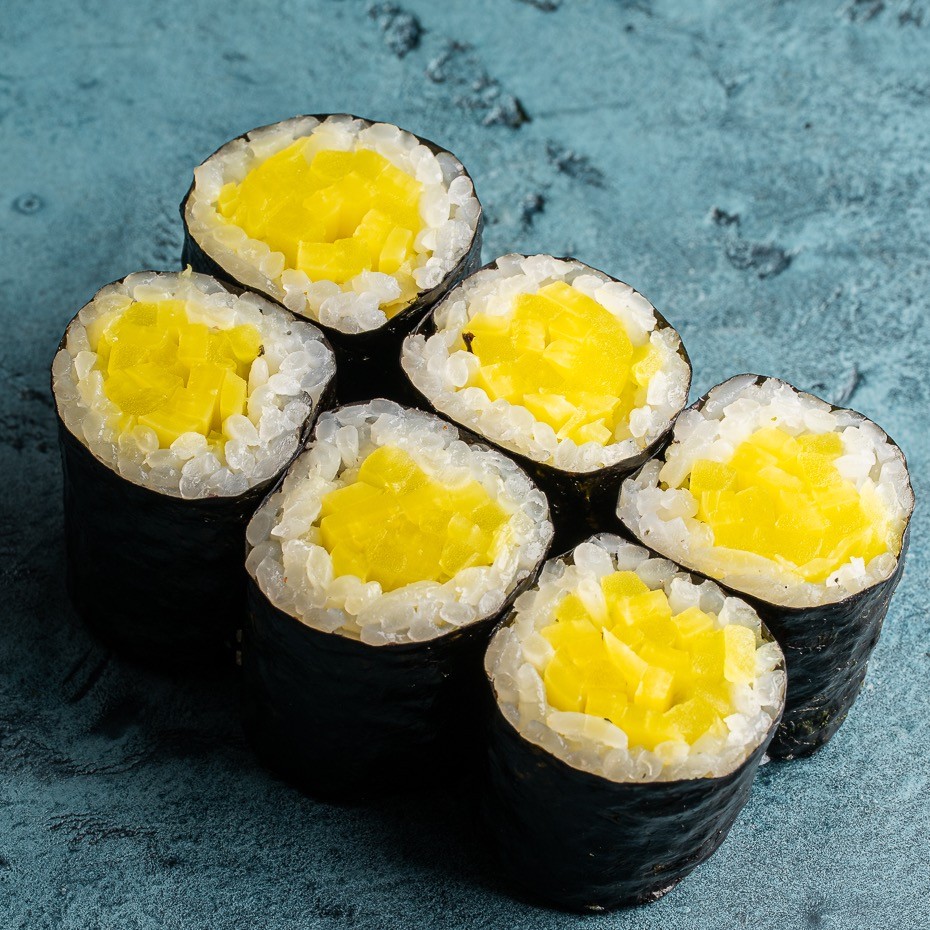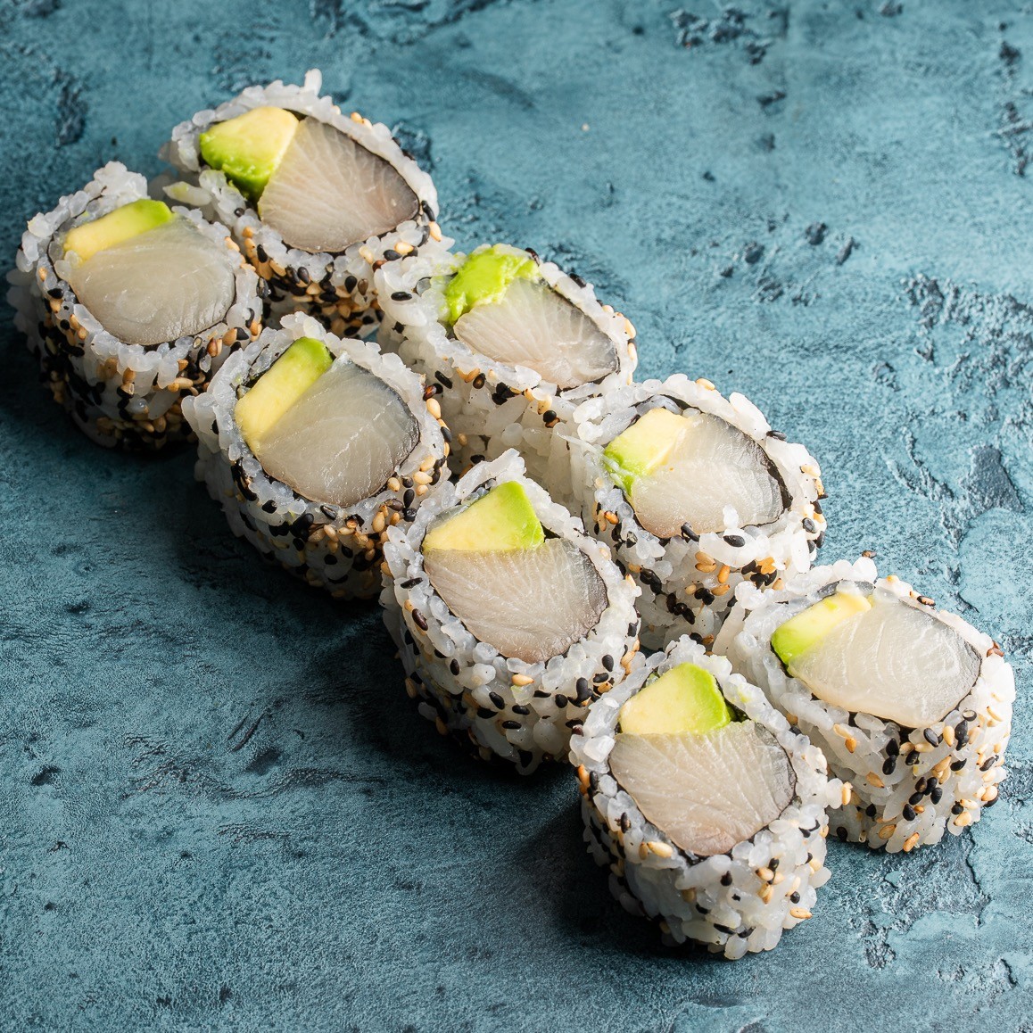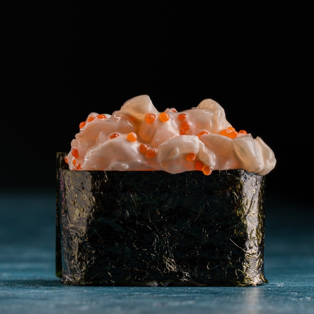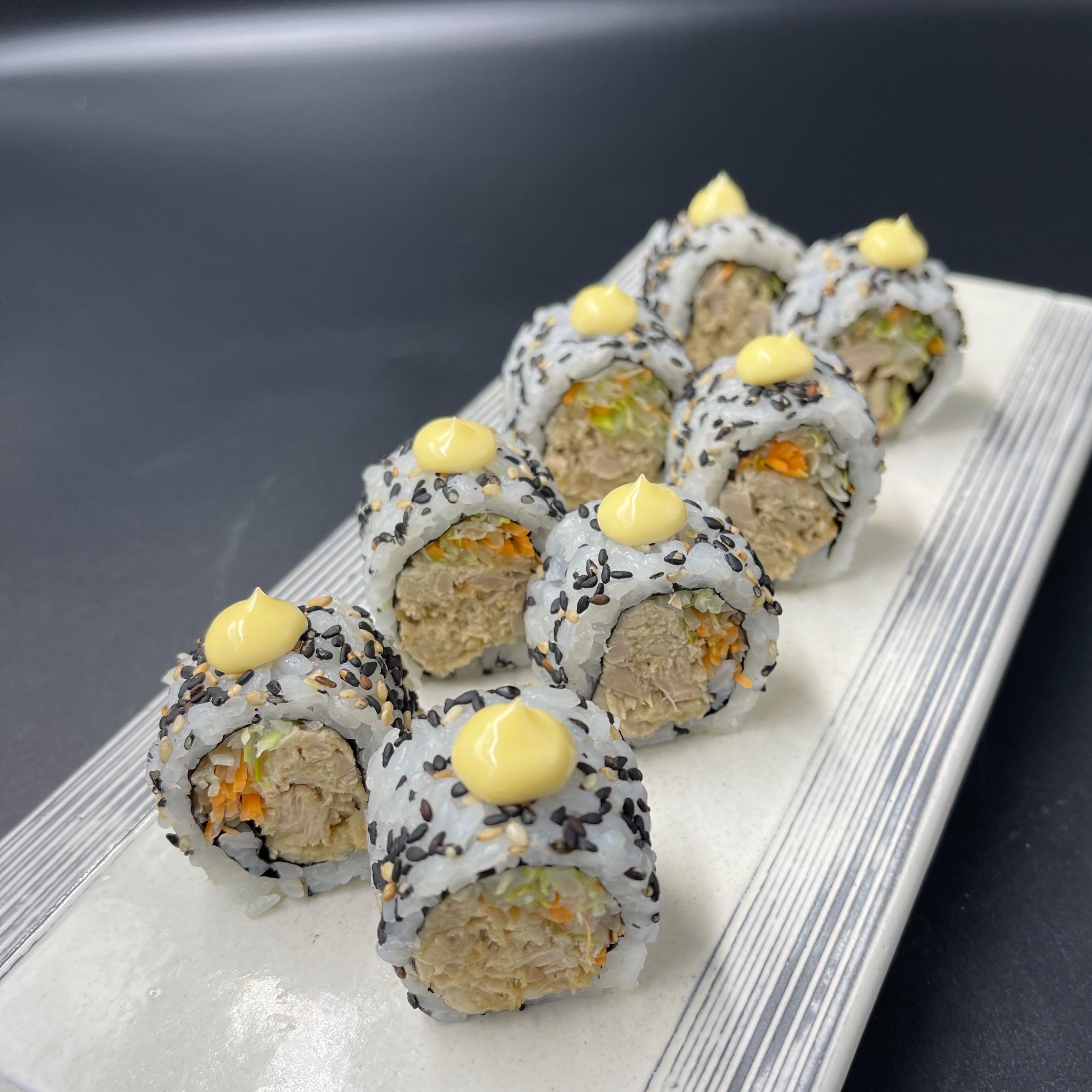 Un uramaki au saumon cuit, légèrement relevé et subtilement croquant