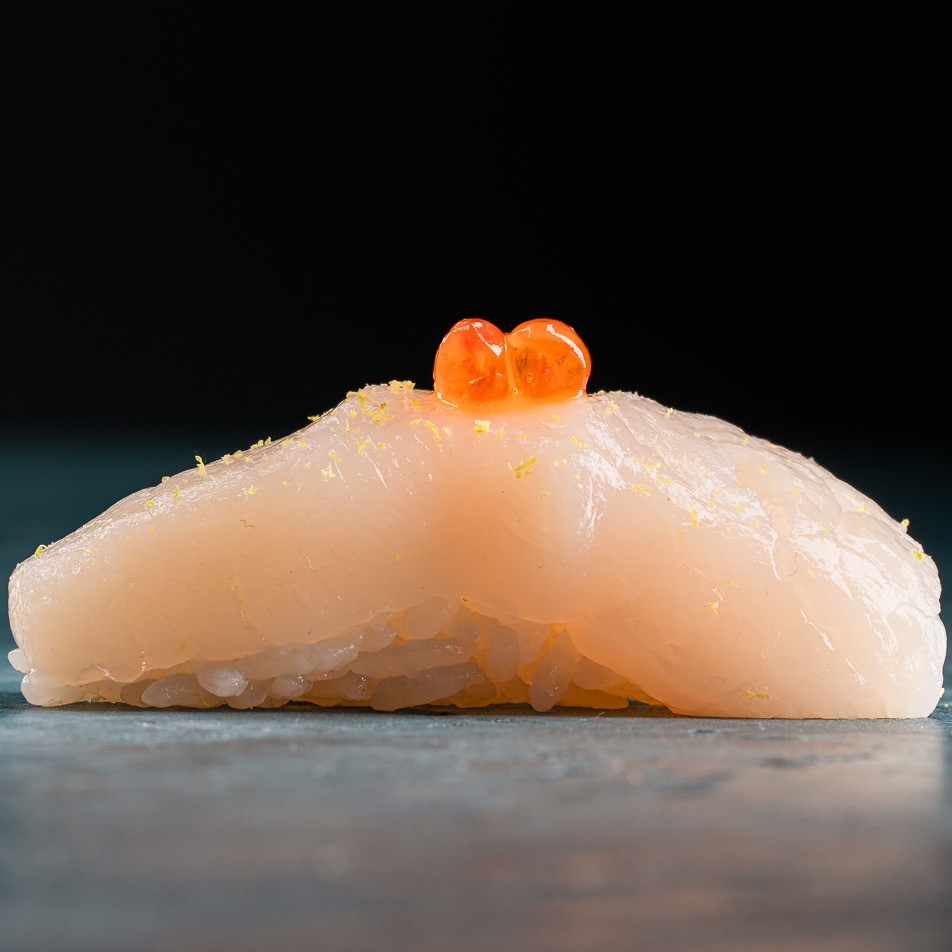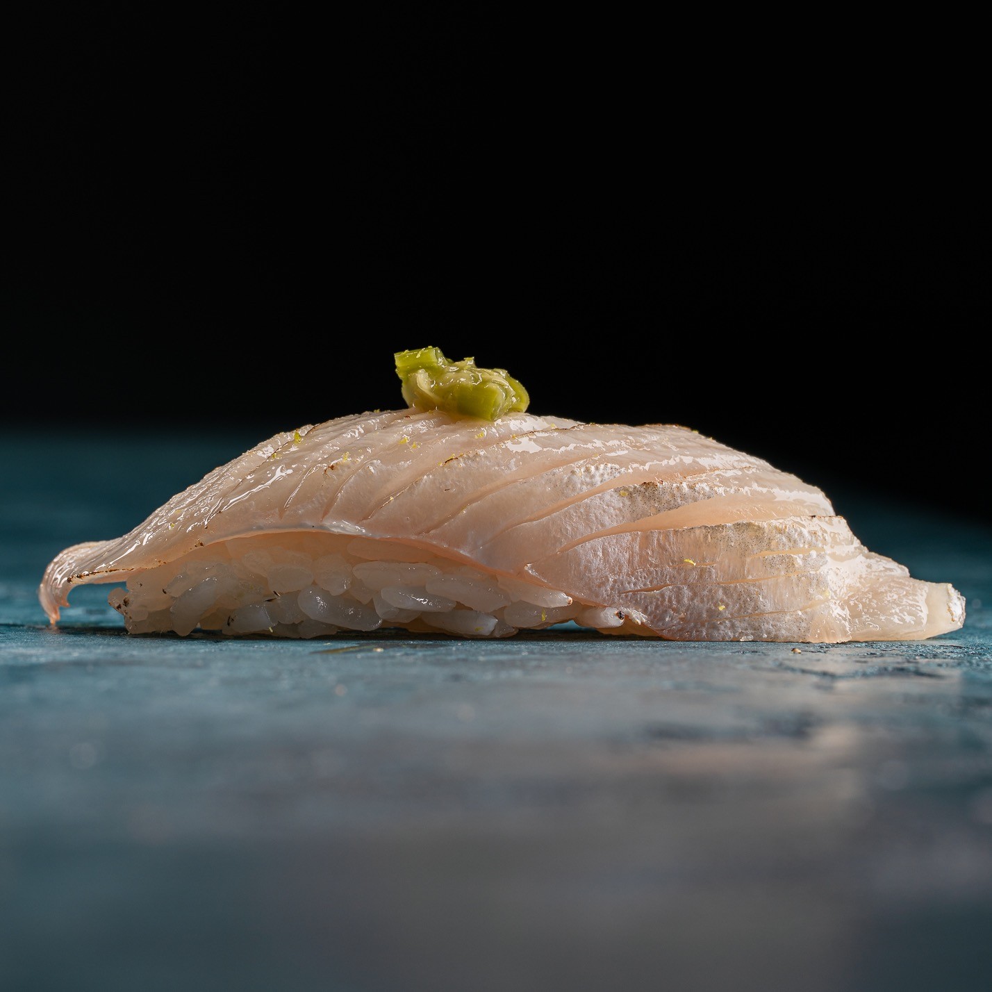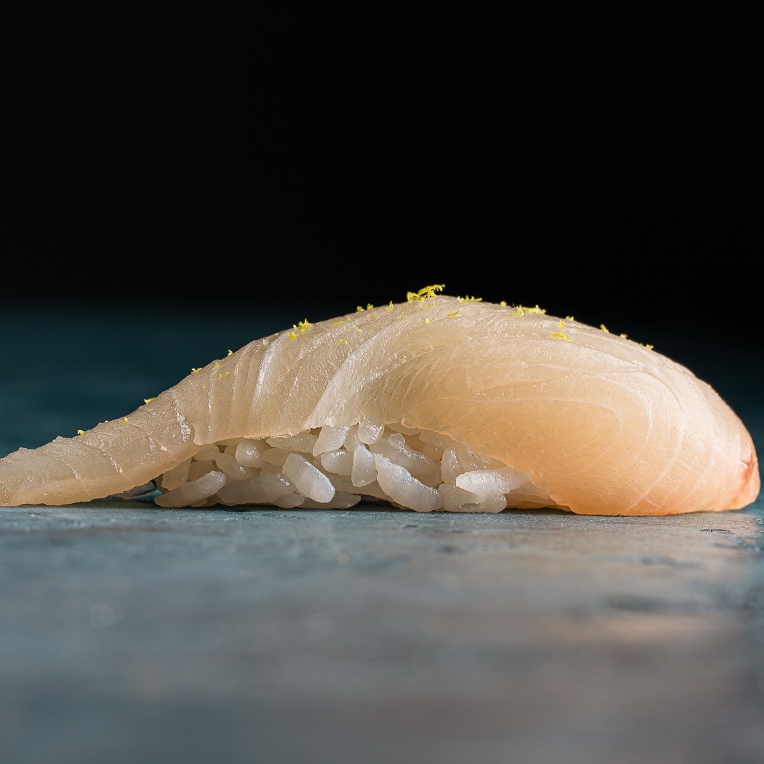Shiso, wasabi frais et zeste de citron accompagnent le meilleur Hamachi