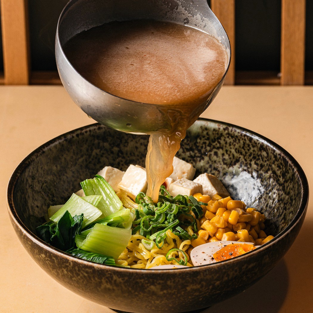 Le bouillon: Legumes suisses et Miso, cuisson lente de 3h dans nos cuisines. Les ingredients: Nos magnifiques nouilles / Tofu artisanal Bio Suisse (Vaud) / Oeuf suisse plein air mariné / Ognons fanes / Pak Choi suisse / Maïs