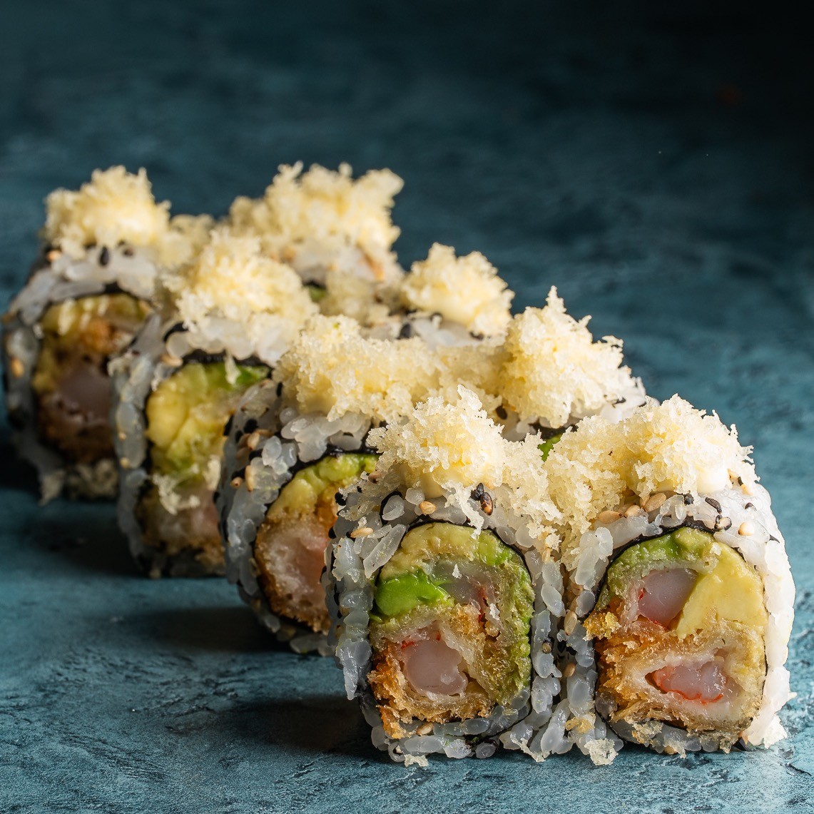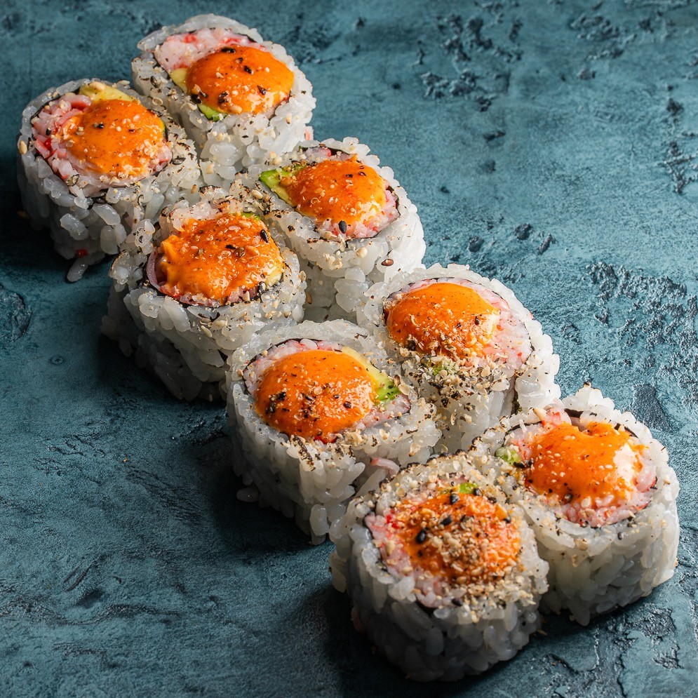 Le goûteux surimi crab avocat avec notre mayo piquante flambée