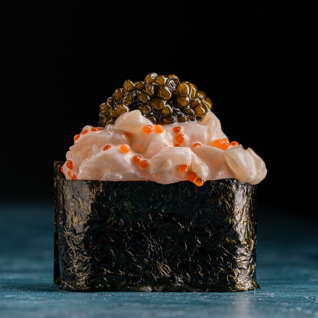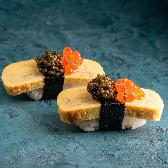 2 pieces: Daurenki Caviar de Petrossian qui caresse notre Tamago fait maison avec les oeufs de notre Region