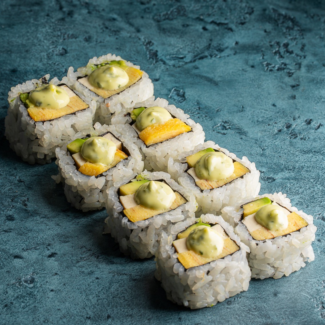 Omelette Japonaise faite par nos chefs avec des oeufs genevois Bio Tofu Bio de Vaud produit avec Soja Suisse et Avocado selectionné
