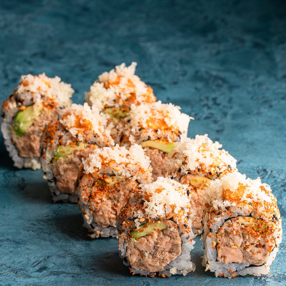 Un mix de thon rouge Bluefin croquant et épicé à l'extérieur avec un noyau fondant de notre meilleur avocat