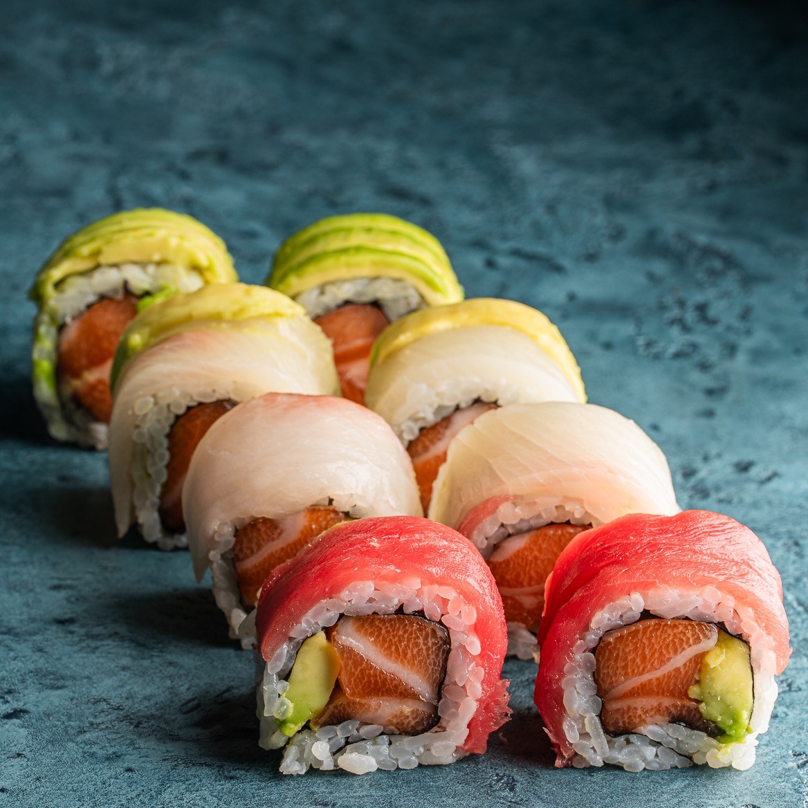 Avocat et saumon d'Ecosse enveloppé dans le drapeau italien (thon, seriole et avocat)